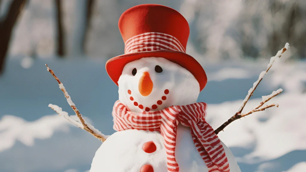 Here’s pure joy captured in pixels: a adorable snowman sporting a red top hat and striped scarf, arms outstretched in the brightest snow, looking absolutely delighted to be alive. This one’s guaranteed to make you smile—especially on those tough Monday mornings when you need a little extra cheer.
