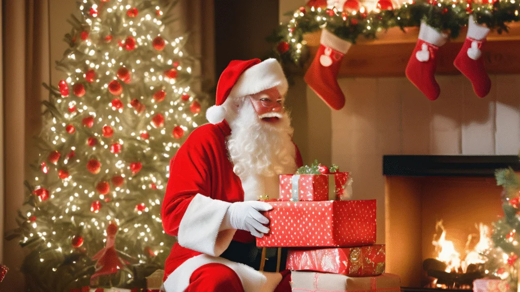 Classic Christmas vibes | Living Room, Santa’s Visit, Ornament Display | Traditional warmth meets timeless holiday magic |