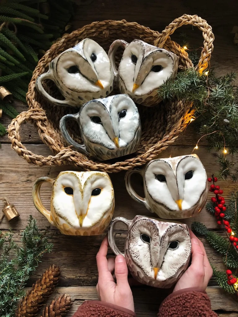 The stunning variety in this owl mug collection by @ubo_decor – from barn owls to great horned owls in different glazes and styles – demonstrates the power of creating variations on a theme. Each feels unique while clearly belonging to the same artistic family.