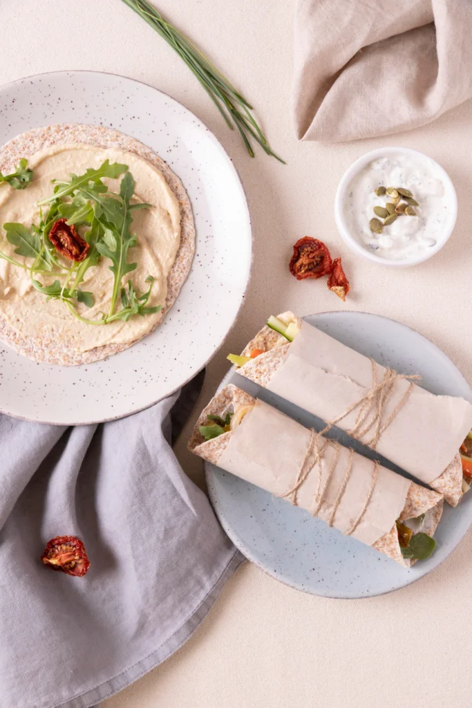 Moving from Asian-inspired flavors to Mediterranean freshness, I can tell you that a well-constructed hummus and veggie wrap delivers the same satisfying experience with completely different taste profiles. You’ll need a large tortilla, quality hummus, cucumber, bell peppers, shredded carrots, tomatoes, and leafy greens. I’ve never seen anyone walk away hungry from this combination when you layer it thick.