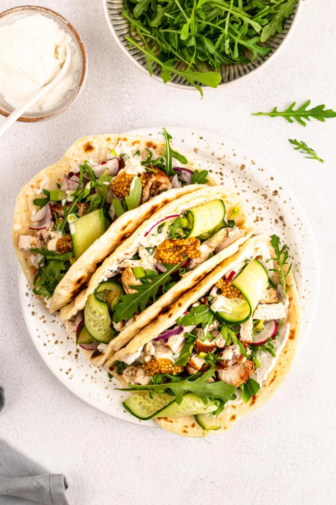 Since rotisserie chicken sits in your fridge begging for transformation, this protein-packed pita becomes your answer to boring leftovers. You’ll shred that chicken, then mix it with thick Greek yogurt instead of mayonnaise – I can tell you this swap cuts calories while boosting protein content substantially.